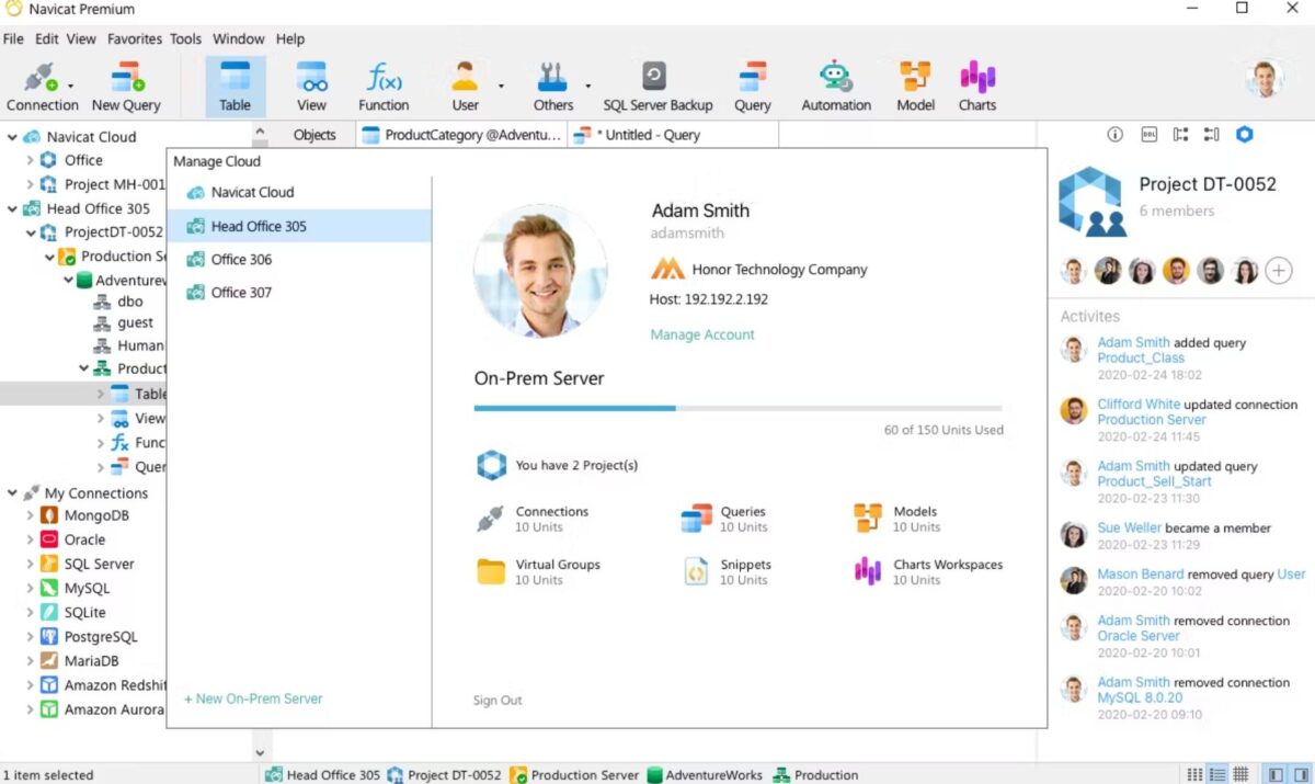 Navicat Premium is a database development tool, that helps organizations of all sizes build, manage and maintain databases. Users can connect with various on-premise and cloud databases such as MySQL, Redis, PostgreSQL, SQL Server, Oracle, MariaDB, SQLite, MongoDB, Amazon RDS, Amazon Aurora, Amazon Redshift, Amazon ElastiCache, Microsoft Azure, Oracle Cloud, Google Cloud, MongoDB Atlas, and Redis Enterprise Cloud. Features include data visualization, code snippet and completion, backup scheduling, virtual grouping, and schema analysis.